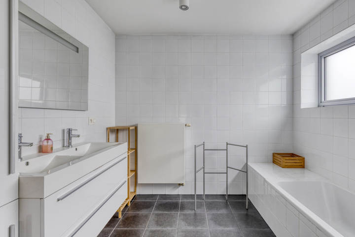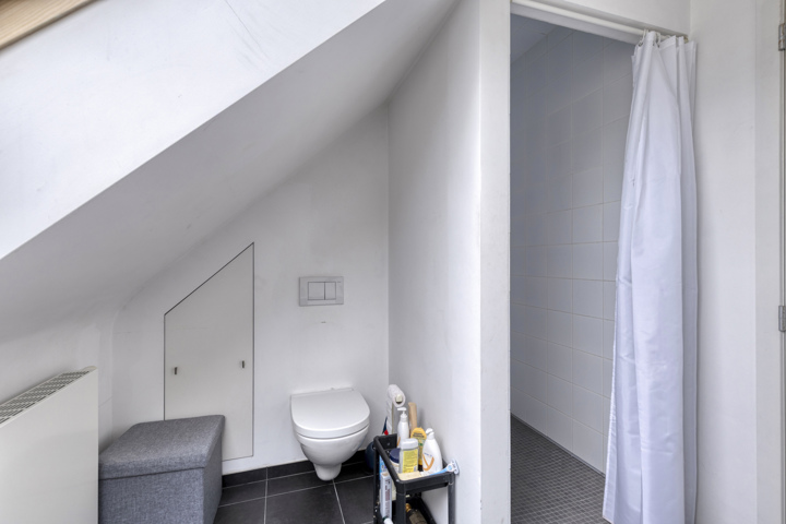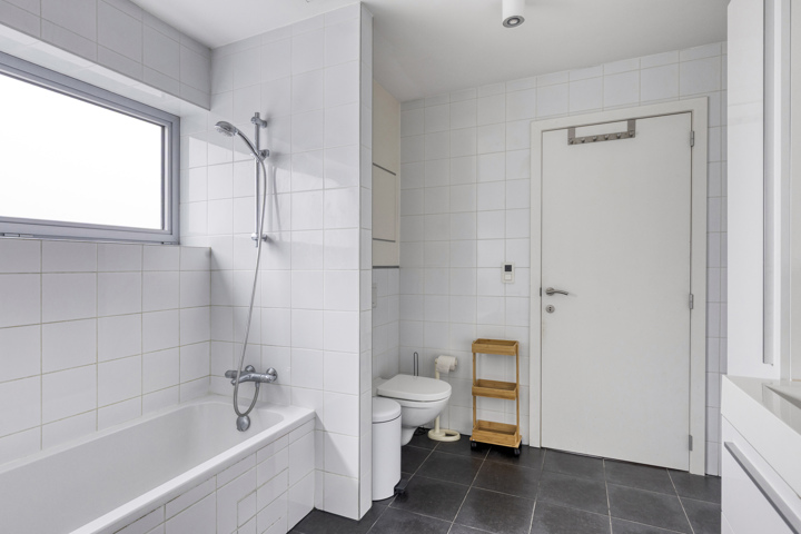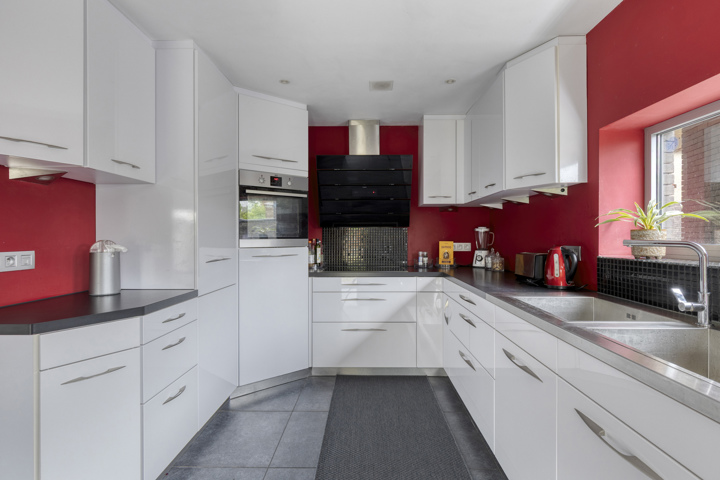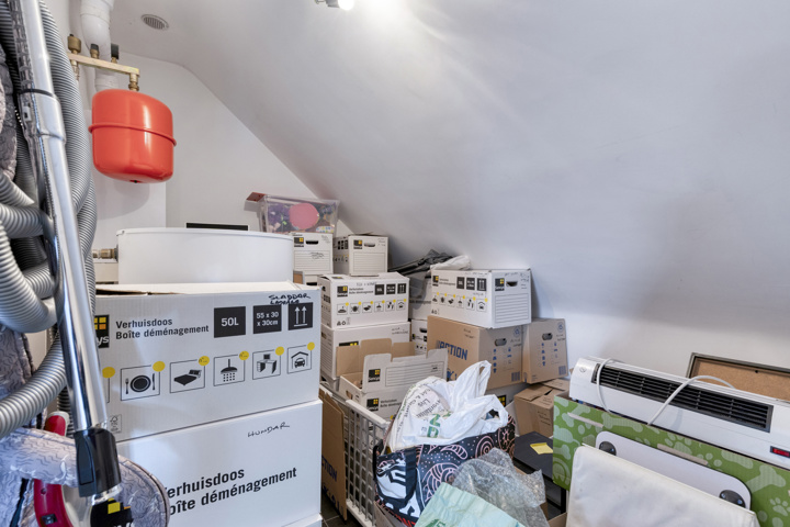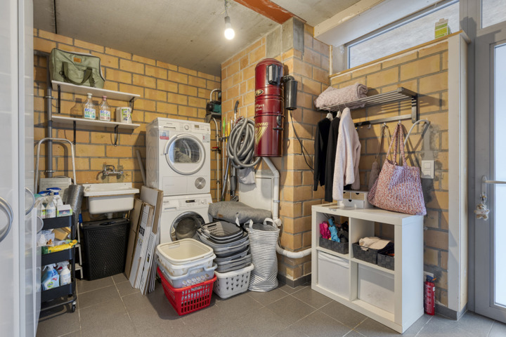 Achter de keuken bevindt zich een ruime berging met aansluitingen voor wasmachine en droogkast, extra stockageruimte, én een centraal stofzuigsysteem – praktisch en comfortabel wonen verzekerd.