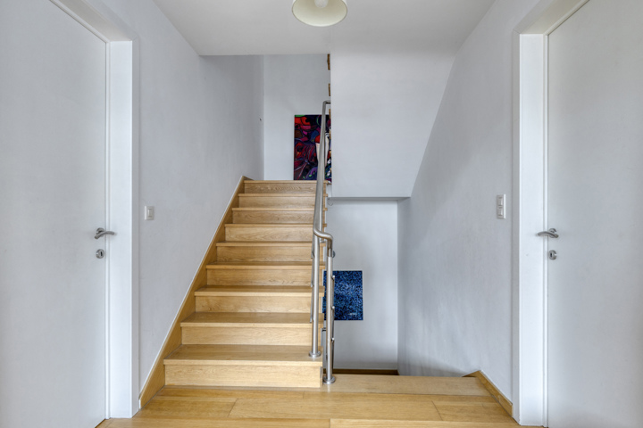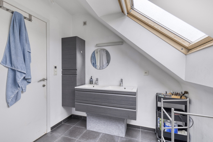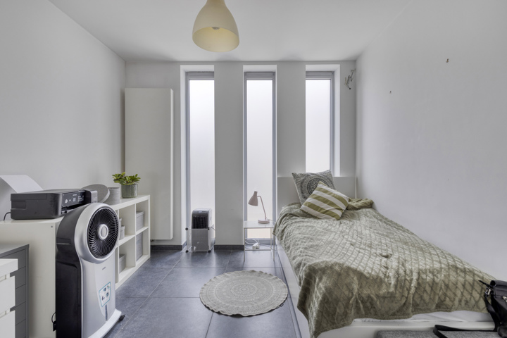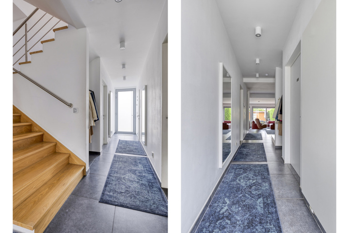 Bij het betreden van de woning kom je in een royale inkomhal die onmiddellijk een gevoel van ruimte en licht uitstraalt. Aanpalend bevindt zich een polyvalente kamer die perfect dienst kan doen als bureau of extra slaapkamer – ideaal voor wie van thuis uit werkt of op zoek is naar een gelijkvloerse slaapkamer. Verder is er op het gelijkvloers een volledig uitgeruste badkamer aanwezig, wat de woning ook levensloopbestendig maakt.