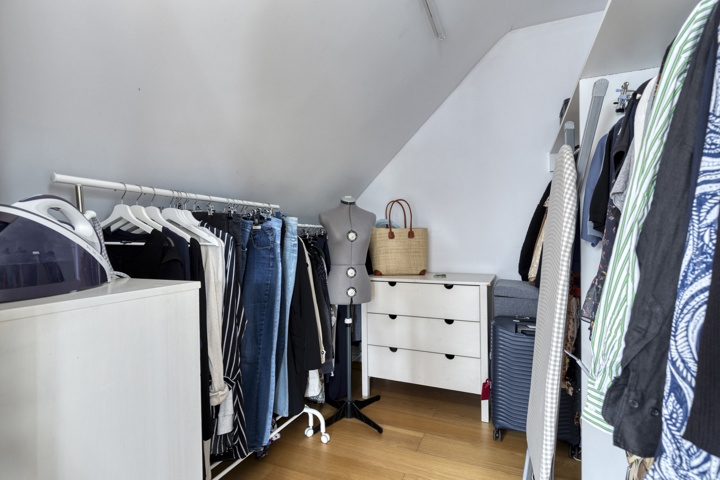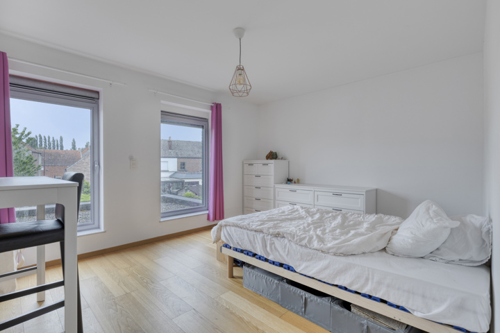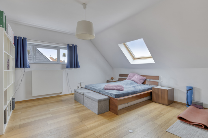 De tweede verdieping herbergt een prachtige master bedroom met aansluitende dressing en een eigen badkamer – een waar privéverblijf binnen de woning.