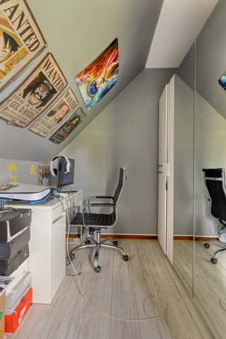 Op de verdieping zijn 3 slaapkamers, apart toilet en een badkamer met ligbad, douche en dubbele lavabo. Vanuit een slaapkamer is via een vaste trap de afgewerkte zolderruimte te bereiken welke dienst kan doen als extra slaapkamer of multifunctionele ruimte.