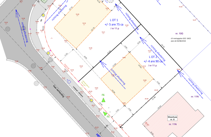 Inplanting: afstand tot de rooilijn volgens verkavelingsplan; zijdelingse bouwvrije strook minimaal 4 m