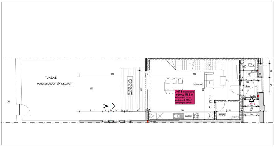 Eigen tuin, parkeerplaatsen en fietsenberging