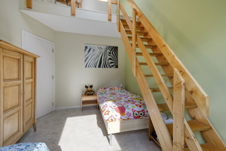 Op de eerste verdieping vind je een ruime badkamer, een eerste slaapkamer, en een tweede slaapkamer met aparte bureauruimte. De tweede verdieping biedt nog drie extra slaapkamers, waarvan twee met mezzanine. De zolderkamers zijn uitgerust met airconditioning, voor optimaal comfort het hele jaar door.