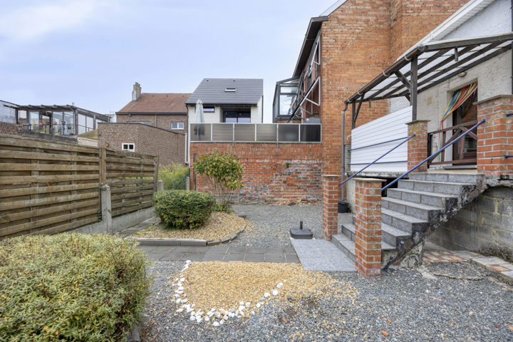 Op het gelijkvloers komt u binnen in een lichte open leefruimte met aansluitende keuken. Zowel de voordeur als de raampartijen van de living werden in 2024 vernieuwd. Verder vindt u op het gelijkvloers ook de badkamer. Achteraan geniet u van een zonnig zuidgericht terras en een aangename tuin, ideaal om in alle rust te ontspannen.