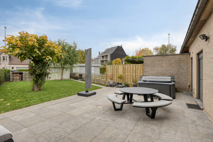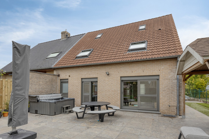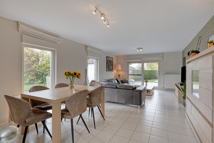 De woning, gebouwd in 1999 en doorheen de jaren grondig gerenoveerd, biedt een doordachte indeling met veel licht en ruimte. Op het gelijkvloers bevindt zich een inkomhal met gastentoilet, een gezellige en lichtrijke leefruimte, een ruime keuken met ontbijthoek en directe toegang tot de tuin, evenals een praktische garage met wasplaats.