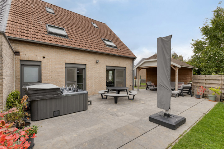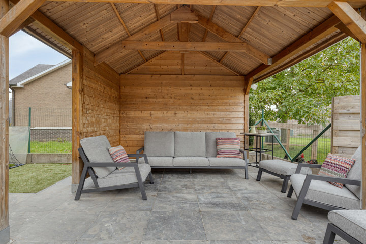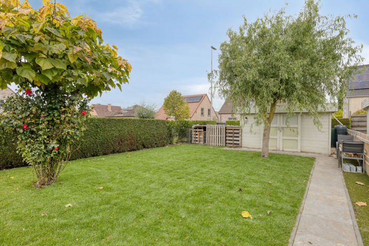 Buiten geniet u van een onderhoudsvriendelijke tuin met een deels overdekt zonneterras en een tuinhuis – ideaal voor ontspanning en gezelligheid.
