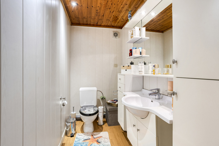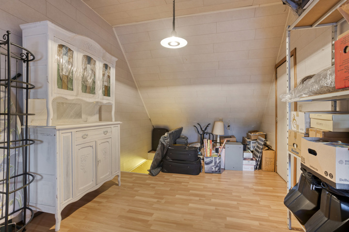 Op de eerste verdieping vindt u twee ruime slaapkamers en een dressing met een apart toilet. Deze dressing kan eenvoudig worden omgevormd tot een derde slaapkamer. De ingerichte zolderverdieping biedt bijkomende mogelijkheden – ideaal als vierde slaapkamer, bureau of hobbyruimte.