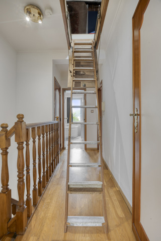 De woning beschikt over een inkomhal, een ruime leefruimte met open keuken en een aangename veranda met zicht op de tuin. Op de verdieping bevinden zich twee slaapkamers en een badkamer met bad en douche. De geïsoleerde zolder biedt extra opbergruimte en kan eenvoudig worden ingericht als derde kamer.