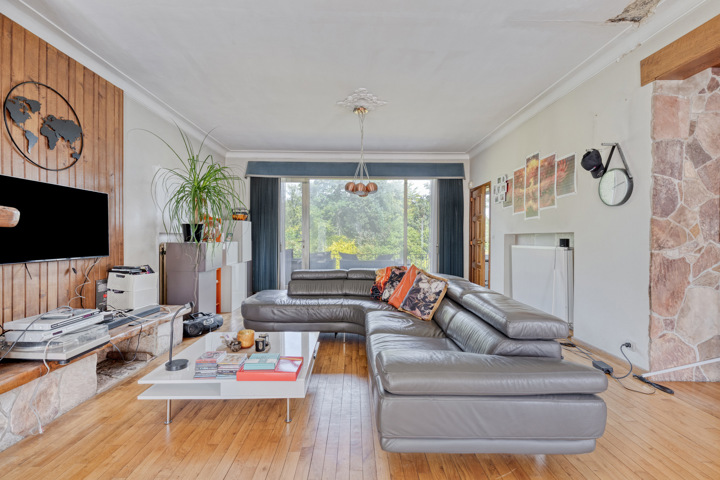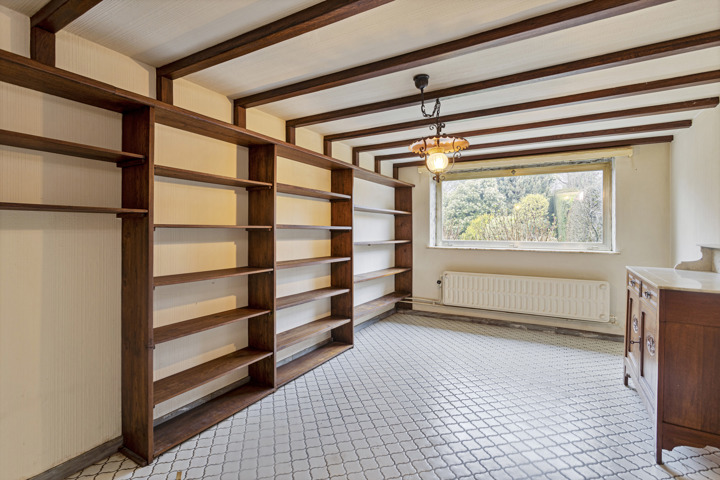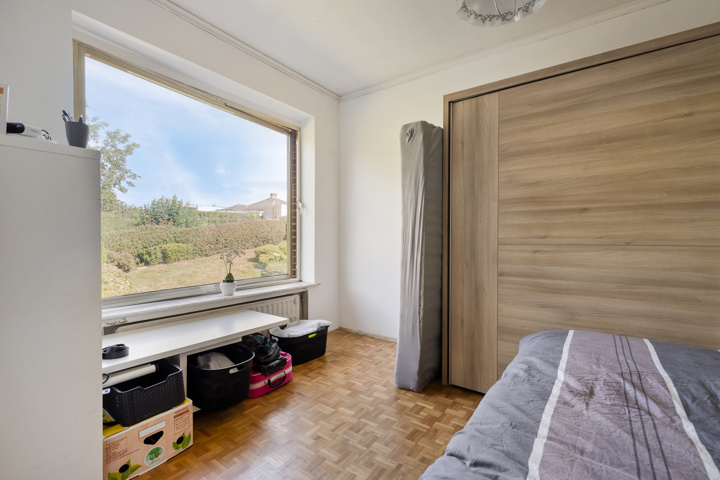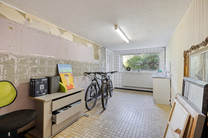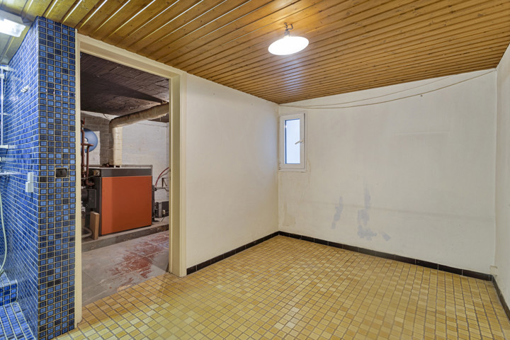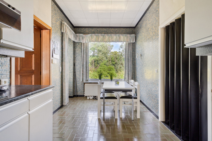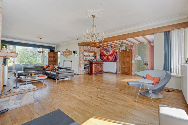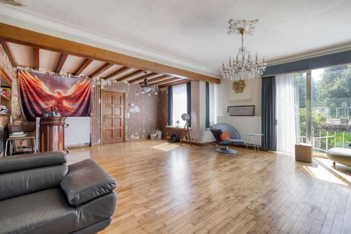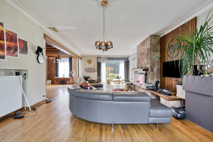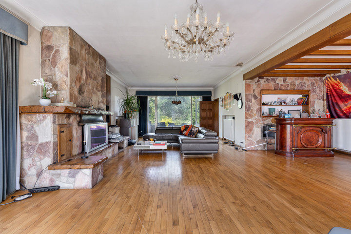 **BEZOEKDAG ZATERDAG 15/11** Te renoveren half-open bebouwing op een perceel van 10are 41ca met groot potentieel. Gelijkvloers bestaat uit een ruime inkomhal, prachtige lichtrijke woonkamer met kwaliteitsvolle eiken parket en grote raampartijen. Daarnaast bevindt zich hier eveneens een open haard. De keuken en eetplaats die uitgeeft op het overdekte terras alsook de slaapkamer met en suite badkamer. Op de benedenverdieping is het mogelijk van 2 slaapkamers en een badkamer te installeren, alsook vinden we hier de stookruimte en dubbele garage terug.