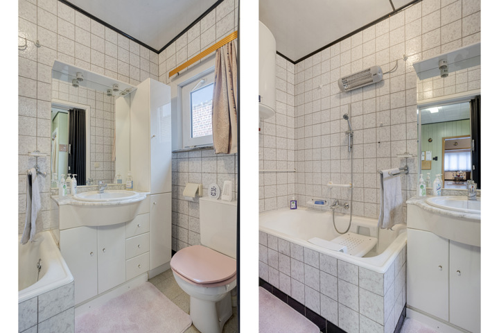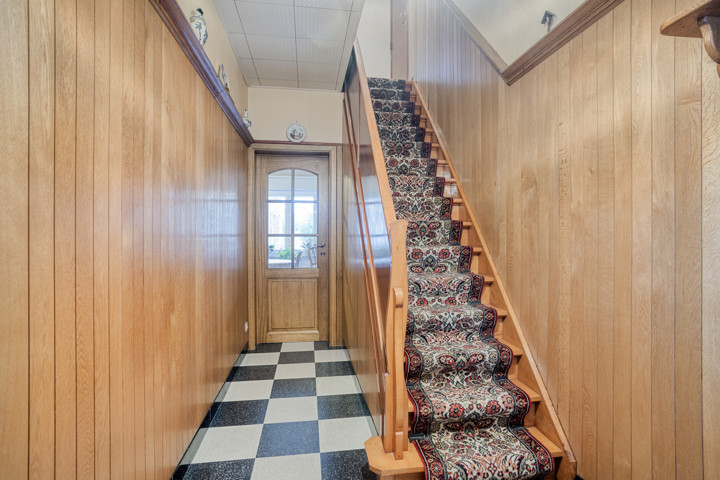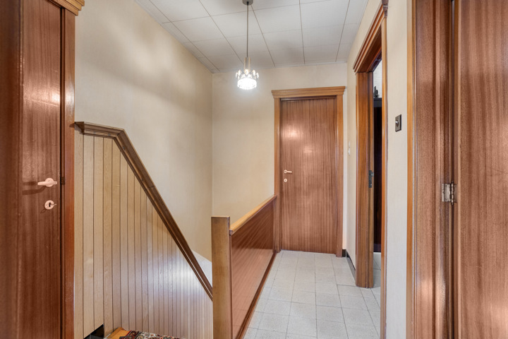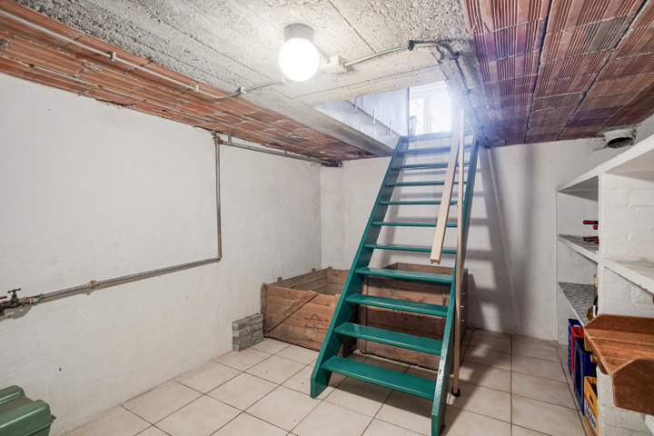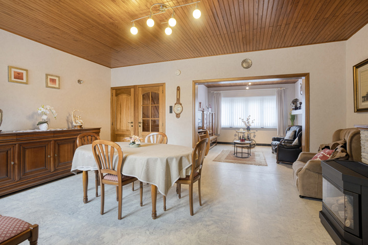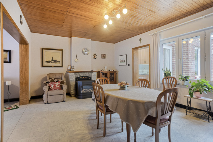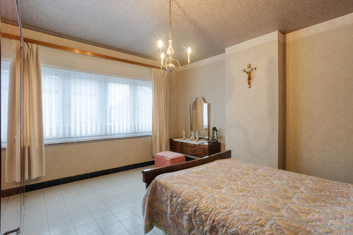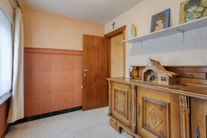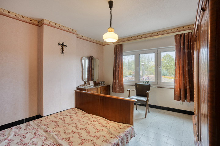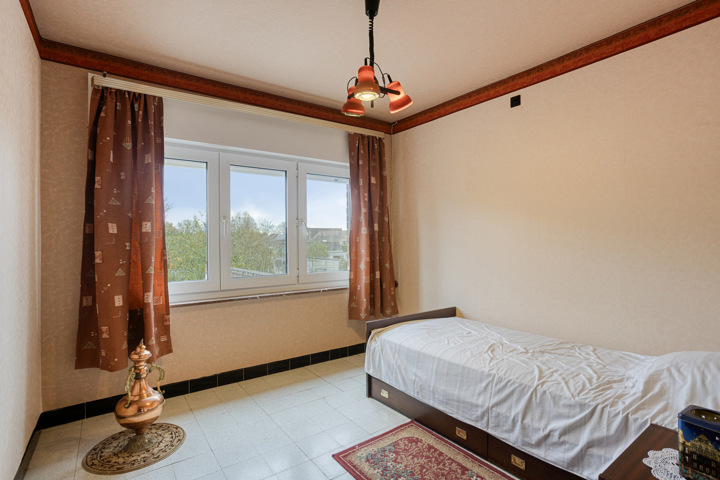 Vandaag is zij als volgt ingedeeld: - gelijkvloers: inkomhal, ruime leefruimte met aansluitend de keuken die toegang biedt tot de tuin, badkamer en berging - de verdieping: deze beschikt over een nachthal met 4 (slaap)kamers en een vaste trap naar de zolder. Deze laatste kan verder afgewerkt worden tot een bewoonbare omgeving. Belangrijk en interessant: de tuin is via de straatzijde bereikbaar via een doorgang, rechts van de inkomdeur. Deze tuin is evenzeer te bereiken via een achterliggende verharde weg ( met misschien de mogelijkheid tot het plaatsen van een garagebox)