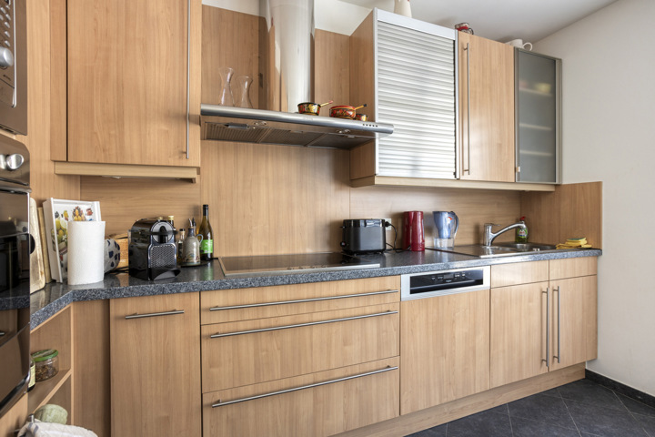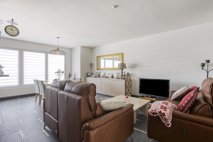 Bij binnenkomst word je verwelkomd in de open en ruime leefruimte, die geniet van overvloedig natuurlijk licht dankzij grote raampartijen. De aangrenzende, volledig uitgeruste keuken sluit hier naadloos op aan en vormt samen met de leefruimte een gezellige en functionele woonplek.