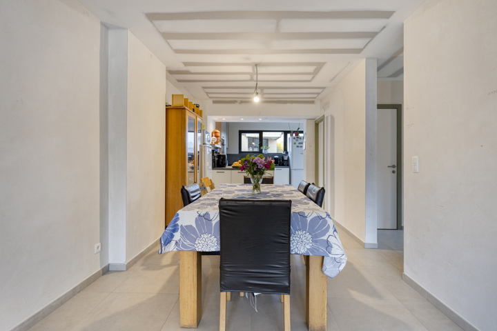 Deze totaal gerenoveerde woning is rustig gelegen doch nabij van het centrum van Liedekerke en Denderleeuw met winkels, scholen, openbaar vervoer/station en verbindingswegen. De gelijkvloerse verdieping bestaat uit een inkomhal met vestiaire en een ruime garage voor 2 wagens. Deze biedt voldoende opbergruimte en geeft achteraan toegang tot de zongerichte tuin. De eerste verdieping brengt ons in de hal met gastentoilet, verder vinden we de gezellige lichtrijke leefruimte met ingerichte open keuken (voorzien van een enkele spoelbak, keramische kookplaat, dampkap, koelkast, oven en vaatwasmachine) en de berging/wasplaats. Aansluitend aan de keuken bevindt zich een inpandig terras. Op de tweede verdieping treffen we een nachthal, 3 slaapkamers waarvan 1 met aanpalend terras en de badkamer met dubbele lavabo, inloopdouche en toilet. De zolderverdieping is te bereiken met een vlizotrap. Deze is volledig geïsoleerd en kan gebruikt worden als extra opslagruimte.